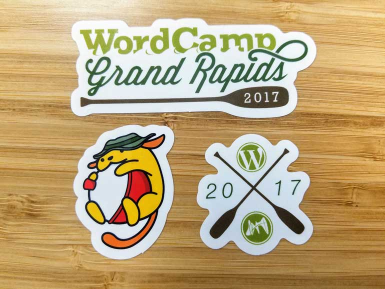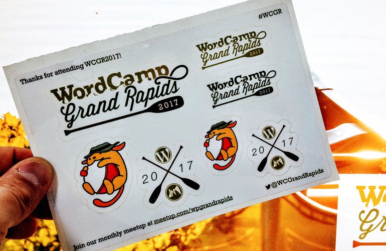 When WordPress fans unite, there's code, Wapuu and stickers, which means loads of fun. For their annual weekend, WordCamp Grand Rapids serves up a custom sticker sheet with creativity and branding in a unified package.