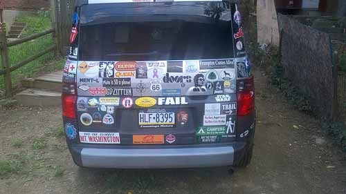 Now this is the car of our childhood dreams: self-expression and stickers galore. Our current BFF customer, Kurt from Lancaster, Pennsylvania, sent us these pics of his sweet ride.