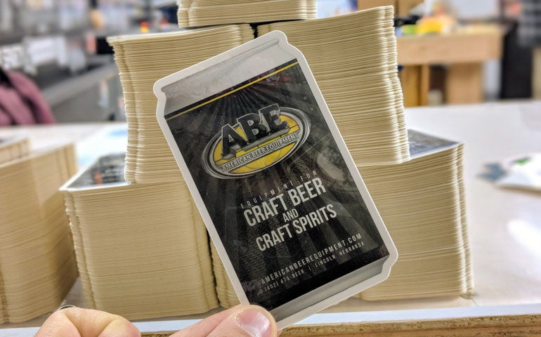 When you're in the beer business, it's good to show your product, especially when marketing your options. American Beer Equipment out of Lincoln, Nebraska, has can-shaped die cut stickers to highlight their craft beer and craft spirit canning products.