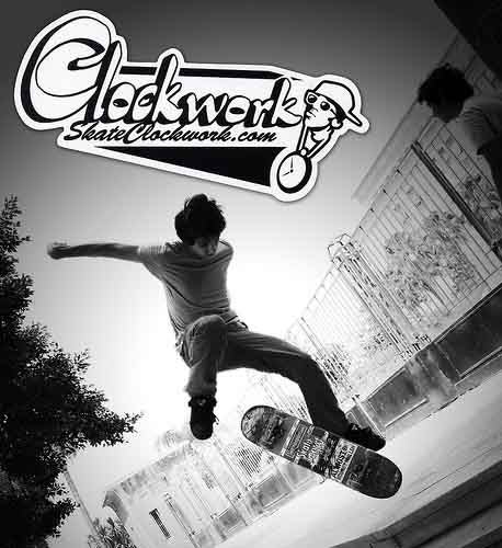 Do you think Flavor Flav minds that he's in this sticker? I don't know if he ever gets to Georgia or not but if he does he might want to check out the two location of Clockwork Skate Shop. They've got skate goods, apparel, shoes, and extras, and by extras they mean watches, wax, videos and tools. They've got an especially large collection of decks. They do not appear to have any gold-plated wall clocks that you can wear like necklaces.