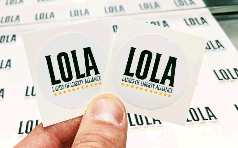 The Ladies of Liberty Alliance (LOLA) is a network of independent, libertarian women leaders who are committed to spreading the ideas of individual liberty and free markets, and they printed up a kiss cut logo sticker for their events and their members.