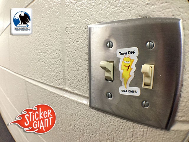 Saving energy is awesome but it's hard to always remember the little things, like simply turning off the lights when you leave a room. Teaching this to kids can be even harder. That is where stickers come in very handy to educate. We recently worked with the Longmont Estates Elementary School and their student Energy Club, the Electrified Eagles, to help remind everyone about reducing energy waste.