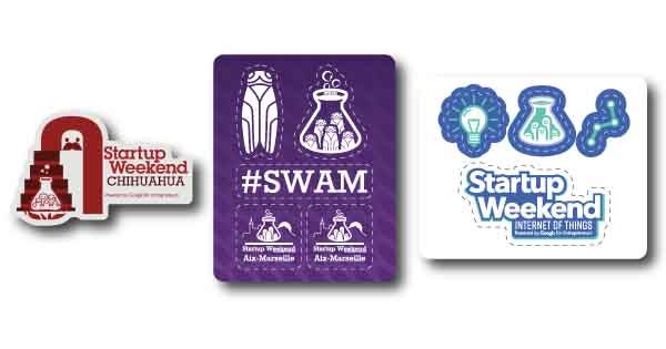 The spirit of innovation is on tap for this weekend, with two events in Mexico and one in France. There are a couple fun sticker sheets and a custom shape sticker en route to these far-flung lands, all with great uses of color, local flavor and some fun iconography. You never know what you're gonna get out of a Startup Weekend