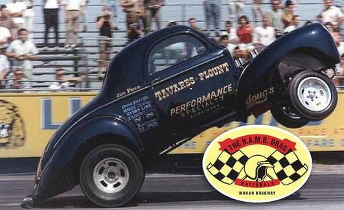 This must be loud. H.A.M.B. Drag Racing is an annual event at the MoKan Raceway, in Ashbury, MO, near Joplin, MO. It's a "traditional pre-65 drag race" so all the cars are classic hot rods.