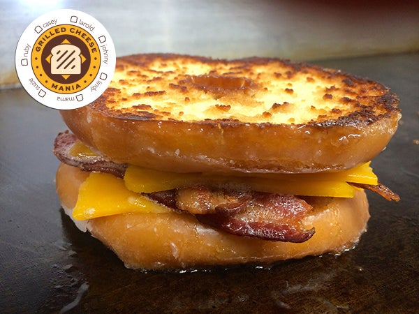 Grilled Cheese Mania is based out of Harrisonburg, Virginia, where they are busy grilling up cheesy goodness. About now you are probably wondering, "What is that delicious looking creation pictured above?" Well, it is called a "Sweet Mucci" and it is cheddar cheese and bacon grilled on a glazed donut. The "Mania" In Grilled Cheese Mania has now been explained.