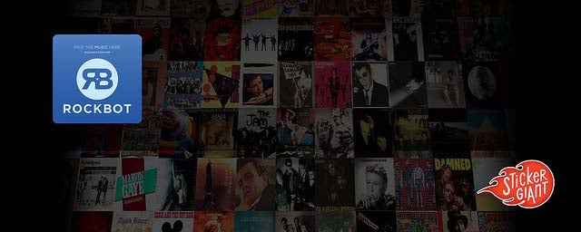 Rockbot also has a sweet promotional sticker boasting the option of picking your music with their logo on a square decal.