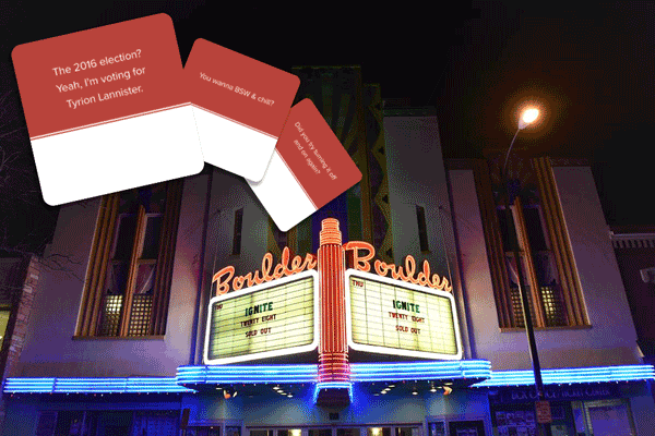 Not sure what an Ignite talk means? It's a night of presentations on a variety of topics – with a twist. Each presentation has 20 slides, that automatically advance after 15 seconds. It is a worldwide movement, and Boulder hosts the largest in the world every 2 or 3 months. Check out some of the archived videos on their YouTube page. Below watch a playlist of the talks from the December Ignite Boulder 28.