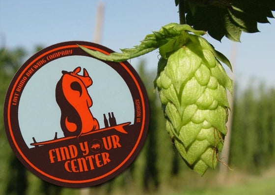 Need to relax? You'll do well to use Lost Rhino Brewing Company's new circular sticker as a focus point. Clear your mind and concentrate on their big red rhino, sitting on his surfboard, enjoying a few beers. After a few moments, you'll be there with him, chilling at sunset after a day of shredding waves. It's all about the Ying and the Yang and taking the moment to soak in that setting sun.
