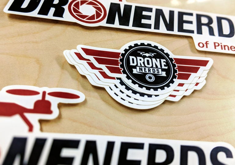 DroneNerds.com is the largest unmanned aerial vehicle (UAV) dealer in the United States, and they have a couple custom matte logo stickers that will take their brand to new heights.