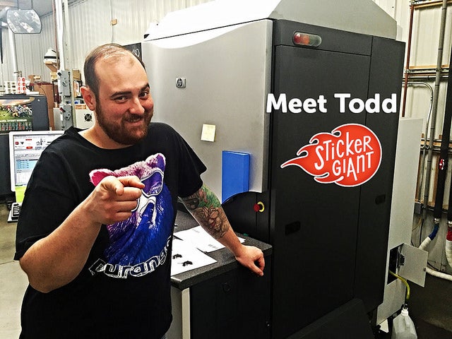 Time to introduce you all to another member of the StickerGiant Team. Being an online custom sticker printer, it is fun to give you a peak inside the company and let you to get to know us. Today, we want you to meet Todd, one of our awesome Press Operators here at StickerGiant.