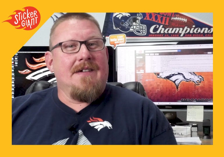 Get to know Tom, a long-time fixture here in the StickerGiant front office. His business is all about helping people find the right sticker for their story. When he's not delighting customers, he's cheering on his beloved Broncos. For real, when this guy gets a paper cut, he bleeds orange and blue. Oh yeah, he brews a mean pot of coffee, too.