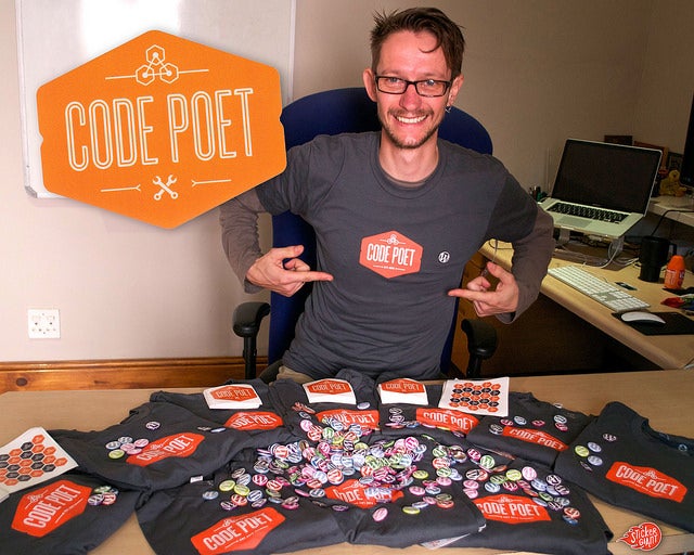 Yes, that is a whole lot of brand schwag by Code Poet and it’s magical. Not that promotional items have any special powers, but because they show the creative edge some companies have when marketing their products. This pile of fun is awaiting a weekend of WordCampers and Code Poet has built a loyal following of WordPress enthusiasts by enticing fans with branded goodies like those shown above.