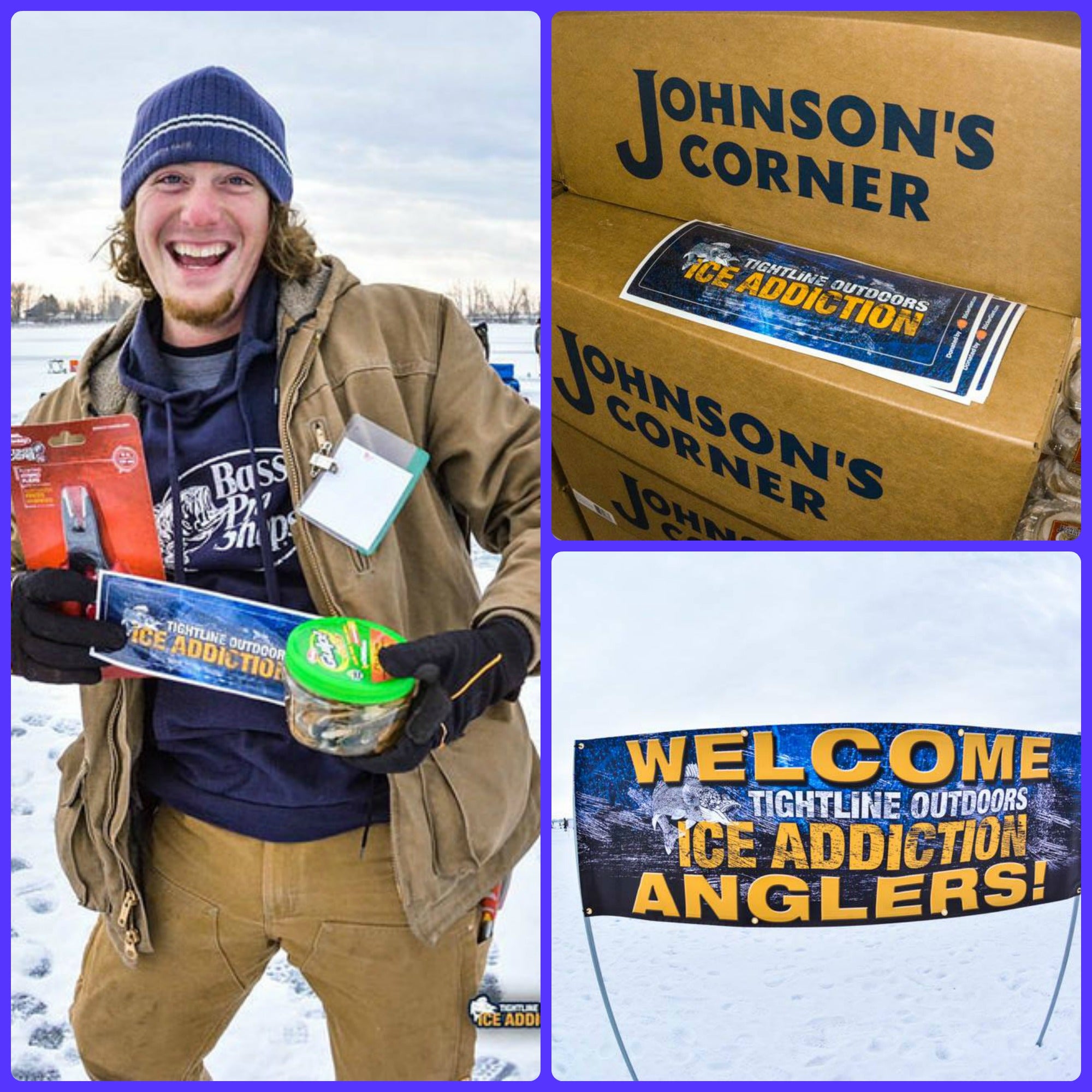 Tightline Outdoors held one of many ice fishing tournaments this past weekend, and StickerGiant had the honor of not only printing the event's stickers, but being a sponsor, as well. Two of our lovely employees also attended - Jordan Muench, who is our pre-pressman with a zest for marketing, and our designer Kevin Griffith - to take lots of pictures and hand out our sponsored stickers. You can see some of Jordan's handiwork above!