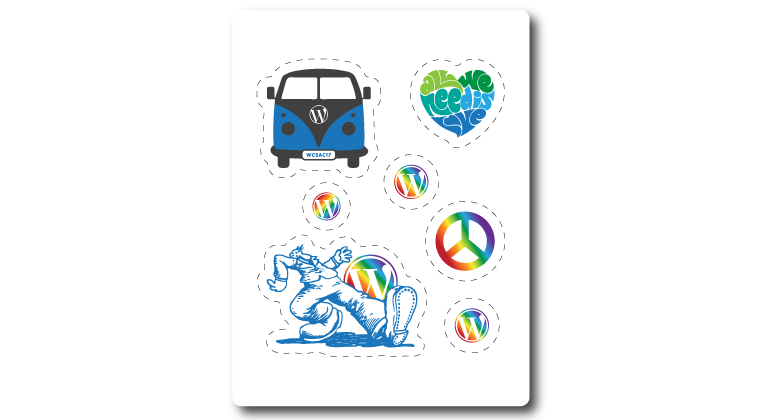 With that, we wish Peace, Love and WordPress to all of our organizing teams around the world, and big thanks to the Sacramento and Tokyo design teams for bringing these awesome sticker sheets through the factory. We can't wait to see the sessions unfold on social media this weekend, and to hear all of the great stories from new and old WordCampers alike.