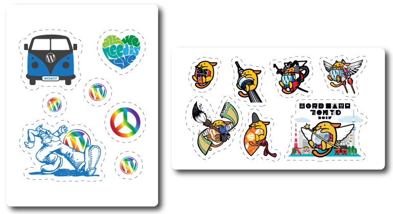 WordCamp Tokyo and WordCamp Sacramento will be gathering for a weekend full of WordPress and sticker love. With exquisitely designed sticker sheets, these WordCampers will have plenty of application options for their creative peel offs.