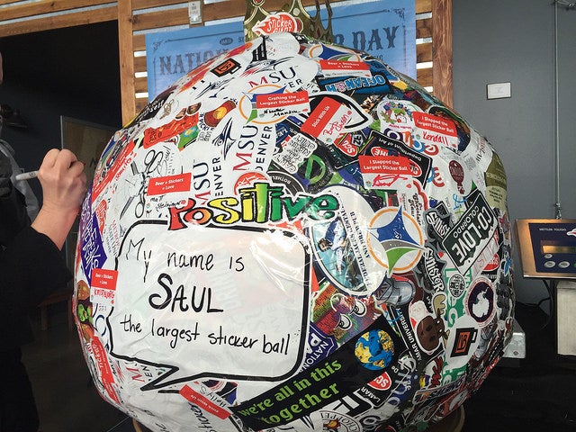 Saul has hit a lucky streak. He has become a national icon and is recognized while out and about on the streets by strangers. Yesterday, Saul was officially weighed in as the World's Largest Sticker Ball for a Guinness World Record. He hit a final weight of 231.6 pounds and 171,644 stickers on him. What could beat that?