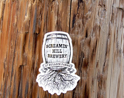 Screamin' Hill Brewery is truly craft beer at its finest, and promises to delight your taste buds with the best the word "organic" has to offer. With so much rich history, it's no wonder their sticker is the visual equivalent of a page ripped directly from history. The beer barrel with roots coming out signifies their love of the earth and natural ways of life, and takes you back in time to when life was just a little bit simpler than what it is now.
