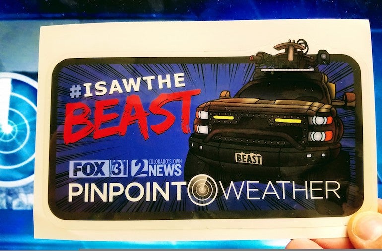 “The Beast” is the Pinpoint Weather team’s state of the art severe weather tracking system, and FOX31 Denver & Colorado’s Own Channel 2 printed up a custom sticker to honor their mighty vehicle.