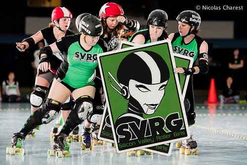 Hailing from the heart of the technological universe, the Silicon Valley Roller Girls (SVRG) are Women's Flat Track Derby Association (WFTDA) members with three teams in the fray - the Dot.Kamikazes, the Killabytes, and the Hard Drivers.