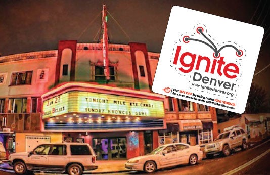 Ignite Denver is back at the Oriental Theater. Photo Credit: Space United.[/caption] We're stoked to announce this weekend's sponsorship, as it's a local event down in Denver, and it's part of the Ignite community that we love so much. Biker Jim’s Dogs will be slinging grub starting at 6pm when the doors open and the crowds starting filing in. Show time is 7pm and will run until 10. Then it's afterparty time! Dandu will take the stage and rock the house until closing time. As they like to say with Ignite talks: