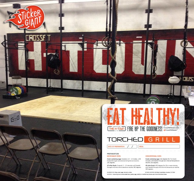 The neat thing about Crossfit H-Town is their variety of training programs and their focus on helping individuals with nutrition options. Unlike, a lot of stickers we make that feature logos and are for promotion. These "Eat Healthy" stickers are designed to stick, track, and instruct on healthy meals.