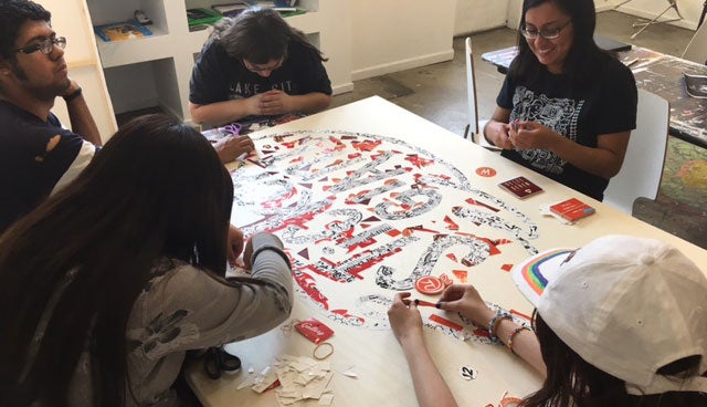 We did a video all about Access Gallery that you can watch here to see more about them and how we came together on this sticker art. Also. Checkout the photos below of them creating this new art piece for us: