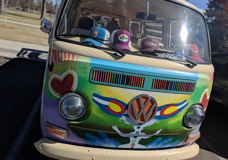 While you listen, scroll through some pictures from our photo shoot in Denver before we recorded the episode, plus a shot of stickers on display at their kiosk in Terminal B of the Denver International Airport.