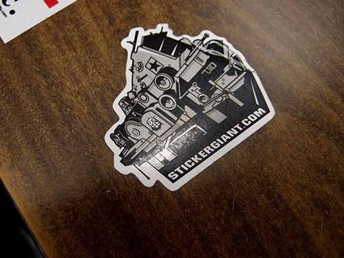 We love printing custom stickers here at StickerGiant. We can't stop making them we love them so much. When we're not printing stickers for our awesome clients, we're printing our own crazy designs, like the old school press shown above. Take a gander at that thing ... it looks like a tank! We're out to conquer the world, one sticker design at a time.