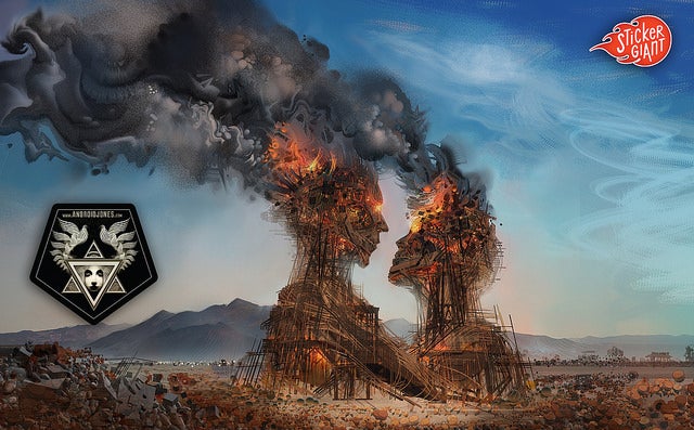 This digital visionary art of Android Jones comes in prints, apparel, tapestries, and holograms. Android is also a fan of featuring his art on premium white stickers that really bring out the detail.