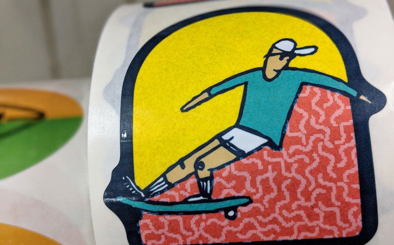 Kiss cut stickers are a versatile product. You can get them on rolls, like you see with the Santa Monica Pier stickers or you can get them individually sheeted. They come on a backing that's larger than the sticker design, and you'll be able to customize the shape and colors of your sticker. They are ideal for these promotional uses like Santa Monica Pier, or you can use them as product labels if needed. They are outdoor durable with UV lamination, and feature rounded corners so your designs peel and stick with ease.