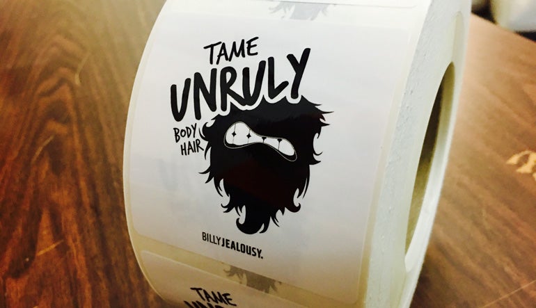 Yeah, beards can get a little out of control. Right guys? Billy Jealousy is providing some outstanding grooming products while mixing in humor to their brand. They are also adding on some custom glossy white labels to help with their fun brand experience.