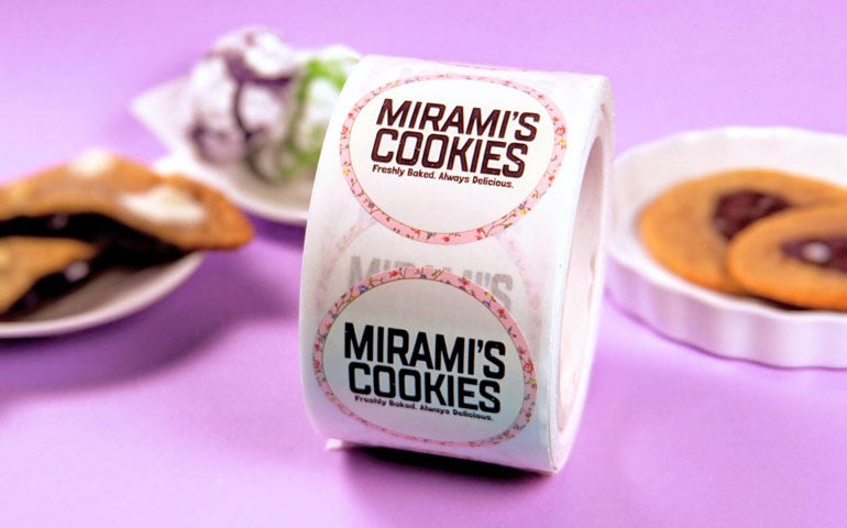 Mirami's Cookies serves up an Insta-worthy sweets experience that takes American-style treats and infuses them with Asian flavors, and their rolled label helps get this brand out into the world.