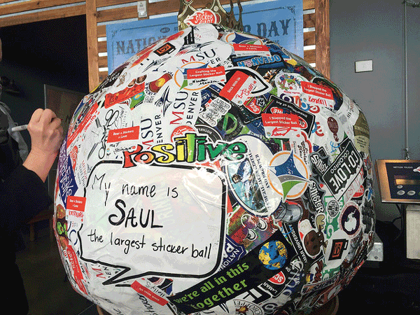 If you're in the Longmont, Colorado area, Saul the World's Largest Sticker Ball is hosting a Happy Hour at Wibby Brewing to celebrate National Sticker Day in style with stickers. Stop by from 3:00pm to 6:00pm MST to grab a craft lager and slap on a sticker.
