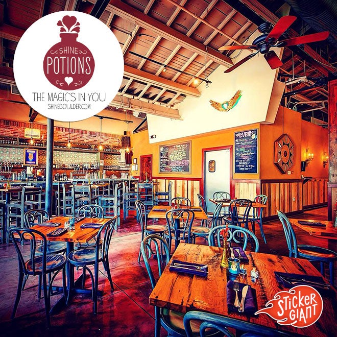 The Shine Potions have different ingredients and health benefits for each type. Pick one for clarity, energy, or even laughter. Their logo is of a potion bottle with hearts coming out the top with a very elegant font and appearance. It really stands out well as a custom logo sticker.