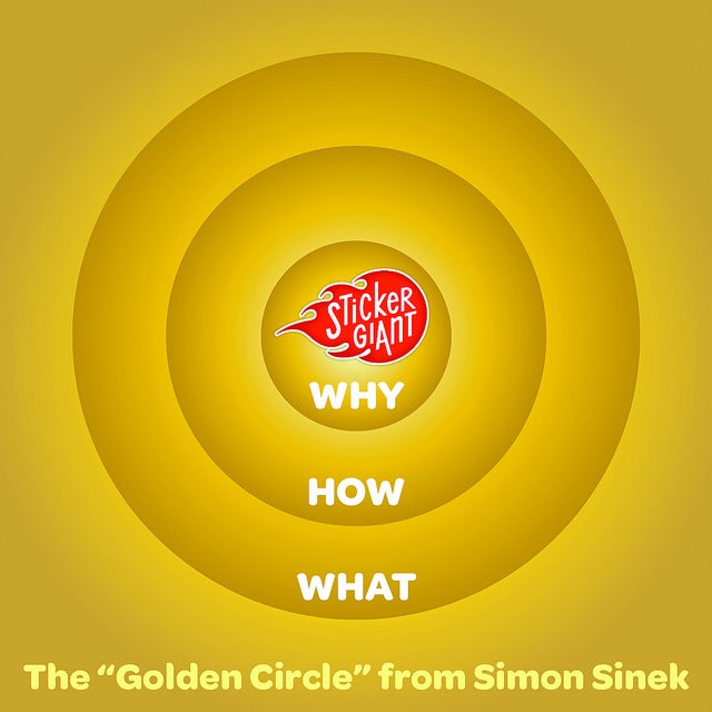 At StickerGiant, we have set clear goals for our business. Three years ago we sat down and looked at our business using the 'golden circle.' This philosophy is based on Simon Sinek's book Start With Why. Starting with the "why" led us to our core concept that every sticker has a story. We hold this to heart and love to share with the world the stories we see day to day.