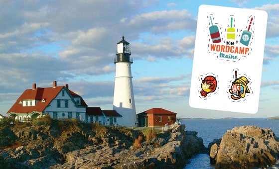 Returning stateside, we begin in Portland WordCamp Maine, which is stocked with a slate of speakers and sessions for all types of WordPress users. And what a sticker sheet! Lobster Wapuu, yellow rain slicker Wapuu, and some old skool boat bouys in a subdued yellow-red-and blue color palette. =