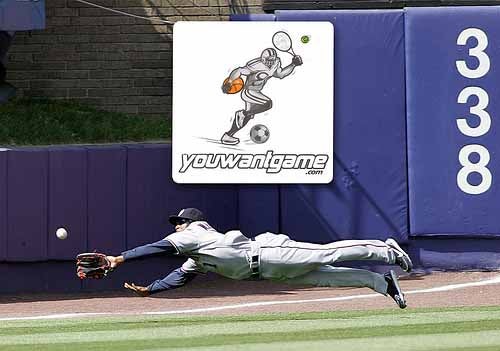 Washington Nationals left fielder Willie Harris makes a diving catch for an out on a fly ball hit by New York Mets' Ryan Church during the ninth inning of a baseball game Thursday, May 15, 2008 at Shea Stadium in New York. The Nationals won 1-0. (AP Photo/Newsday, Audrey C. Tiernan)